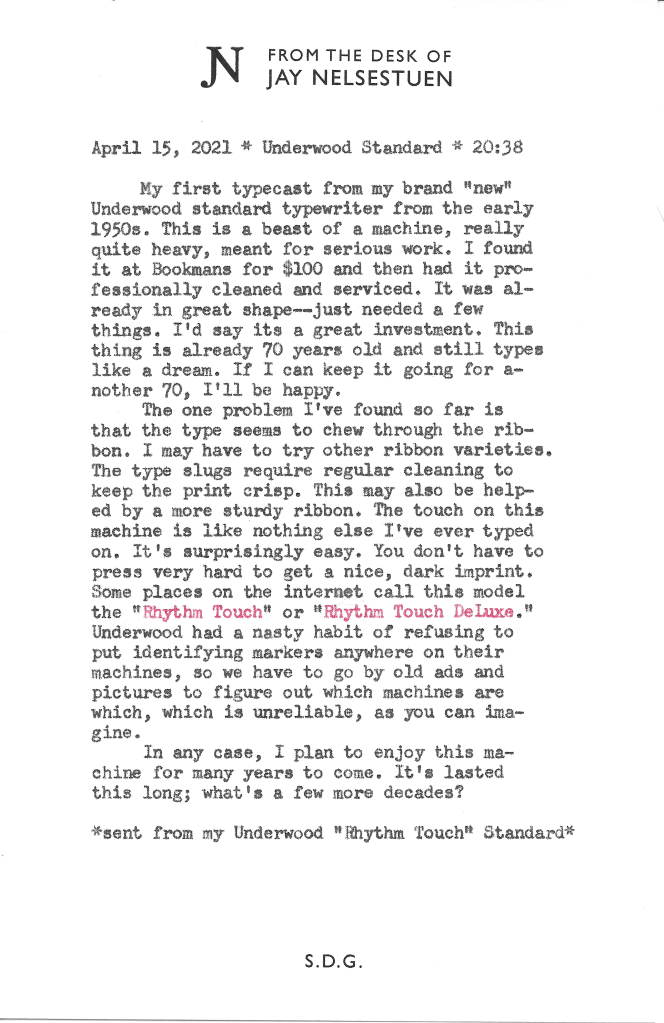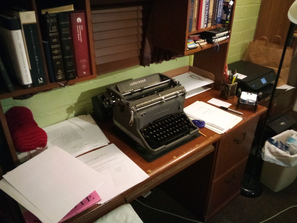 The Underwood in its natural habitat. And yes, that is a Rolodex on the right.
